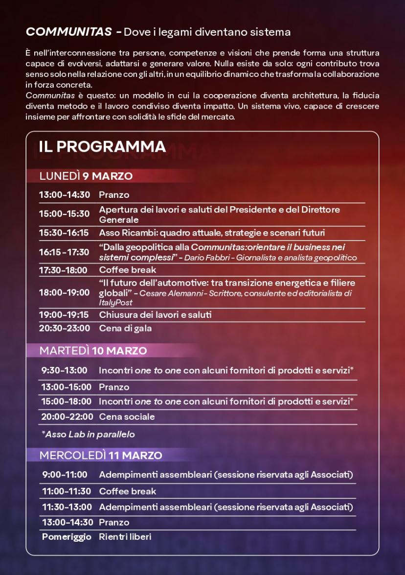 La plenaria rappresenta un passaggio fondamentale per tutti i soci, chiamati a leggere insieme i cambiamenti del mercato, le sfide operative e le scelte più efficaci per rafforzare il posizionamento di Asso Ricambi in un contesto sempre più competitivo e interconnesso.